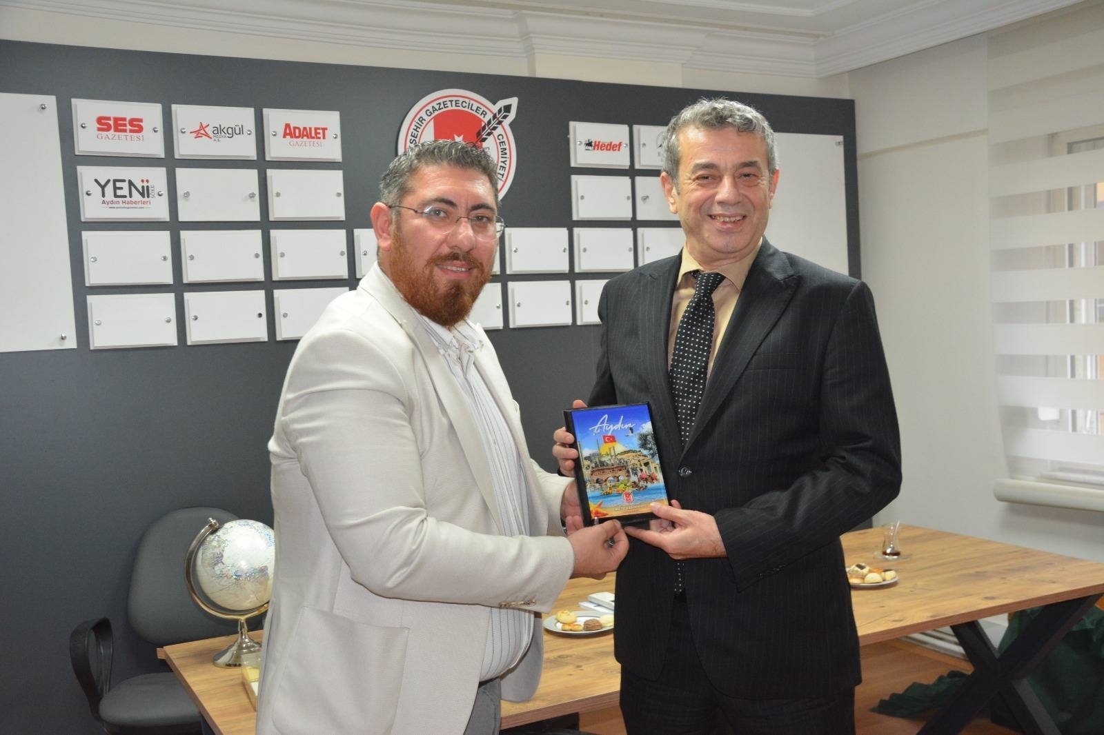 Aydın Esnaf ve Sanatkarlar Odaları Birliği (AYESOB) Başkanı Muhammet Ali Künkçü ve Başkan Vekili Salih Kozalı, Aydın Büyükşehir Gazeteciler Cemiyeti’ni (ABGC) ziyaret etti. Cemiyet merkezinde gerçekleşen ziyarette Künkçü ve Kozalı’yı, ABGC Yönetim Kurulu Başkanı Ümit Özmen, yönetim kurulu üyeleri ve cemiyet üyeleri karşıladı.